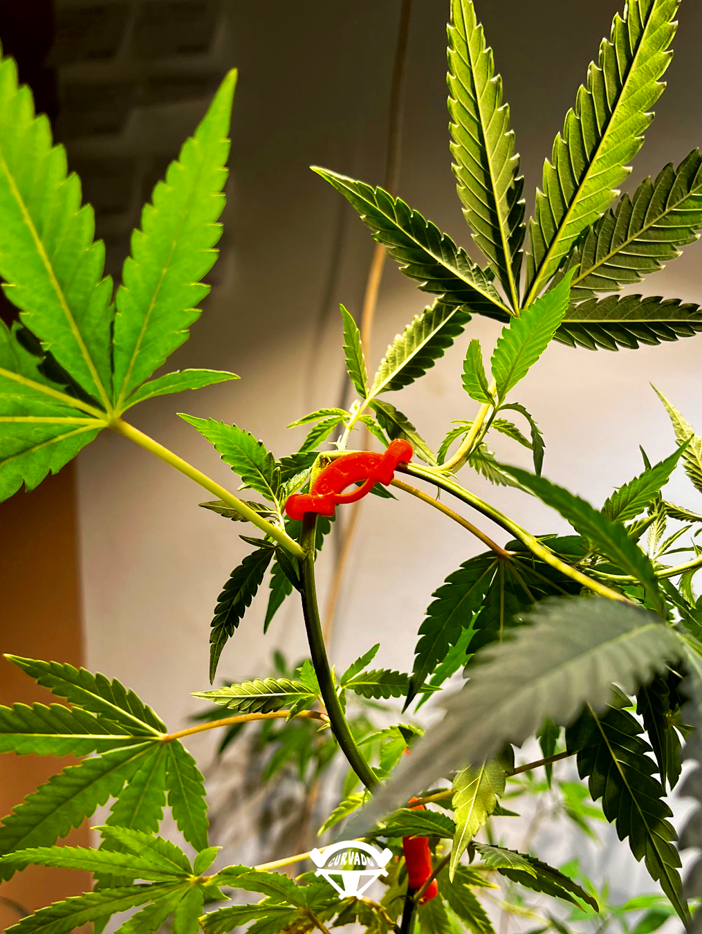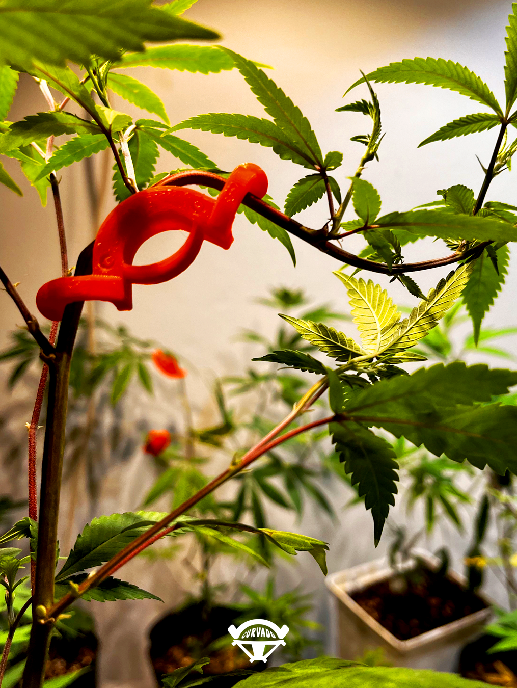-El bajo estrés o LST permite guiar las ramificaciones sin detener desarrollo ni disminuir el crecimiento. -Las anclas, tutores y redes cumplen la función de dar igualdad de altura en los nudos bases y la canopia generada, de donde esperamos las espigas de floración.